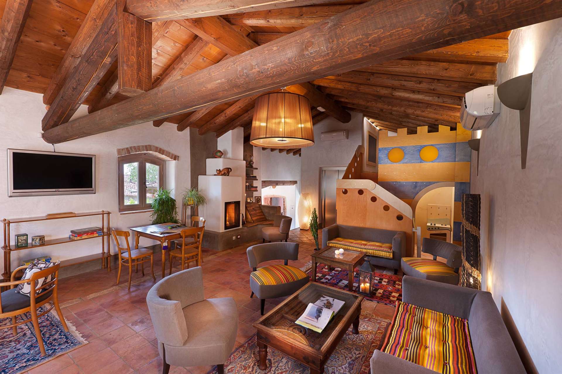 nella sala un’antica botte di legno è stata trasformata in un incantevole angolo per