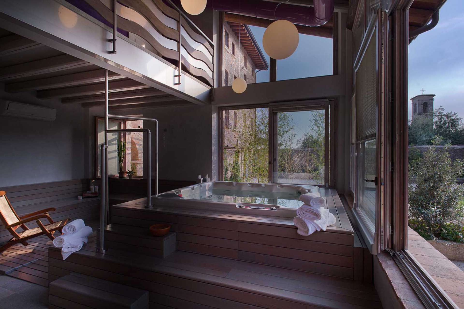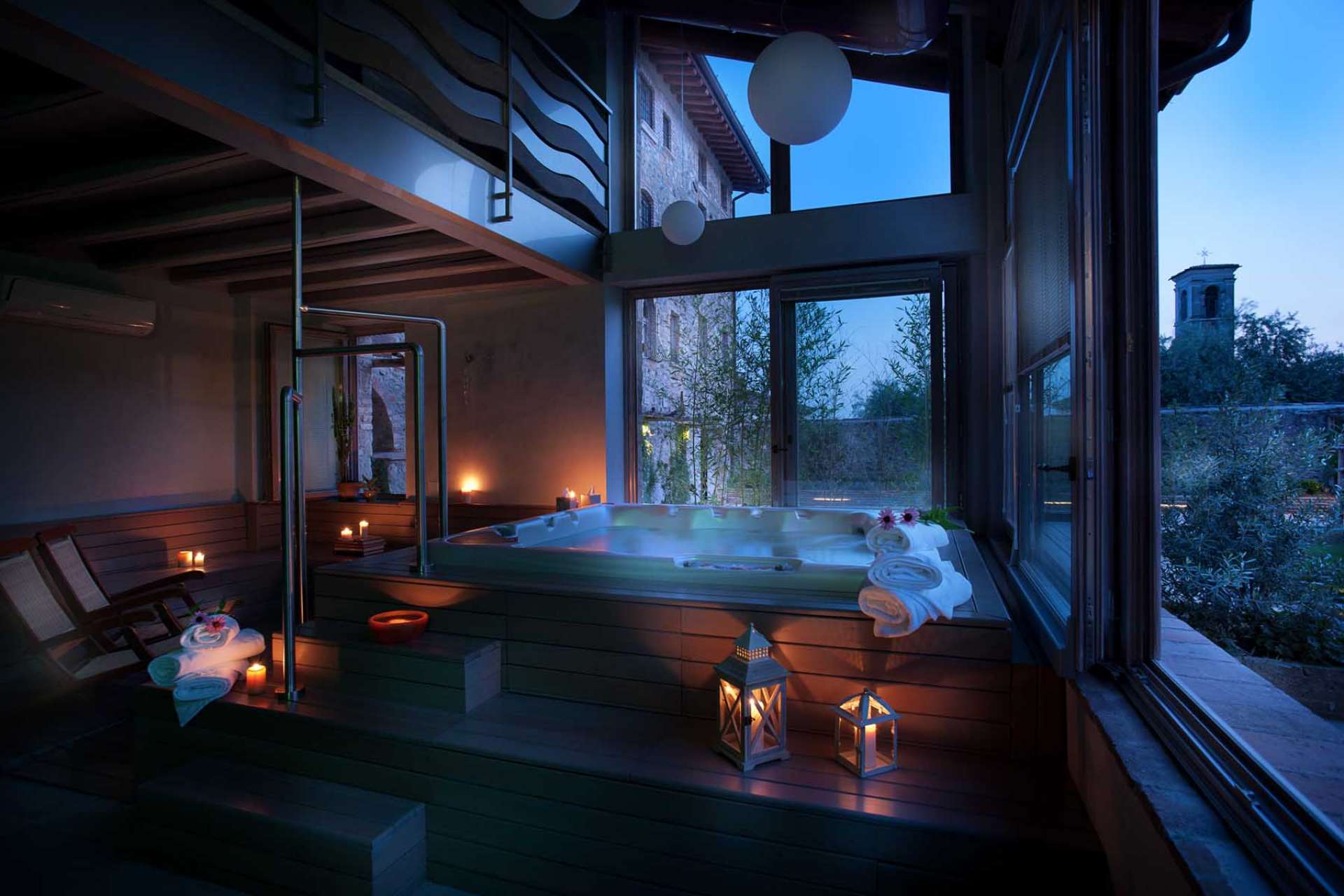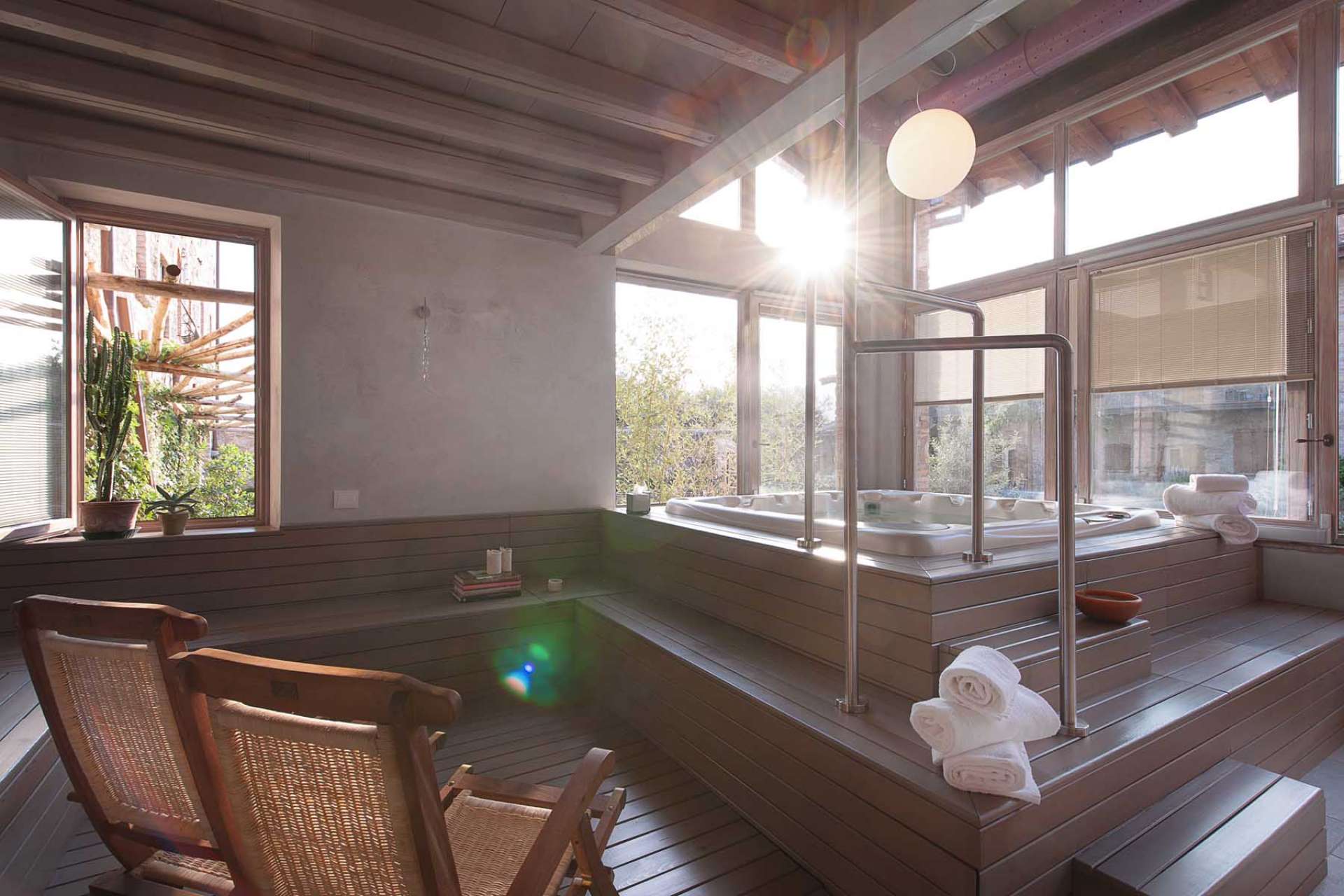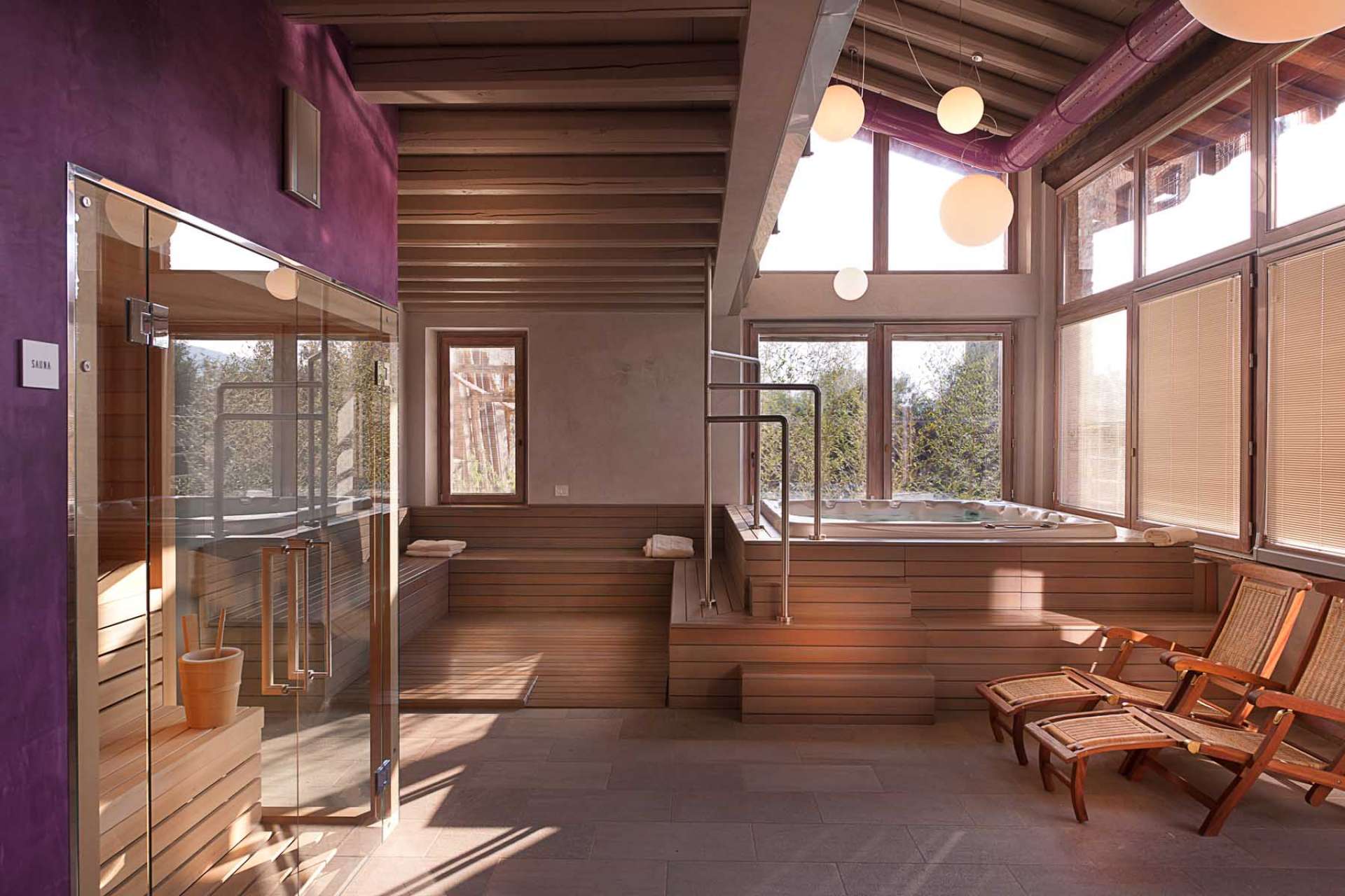 Ein sanftes Bad im Whirlpool, oder Sauna und türkisches Bad, um eine gute Balance zwischen Körper und Geist zu finden. Anschließend eine kalte Dusche, die sich in einem komplett restaurierten Bottich befindet. Auch der Wellness-Bereich wurde für Behinderte geplant.